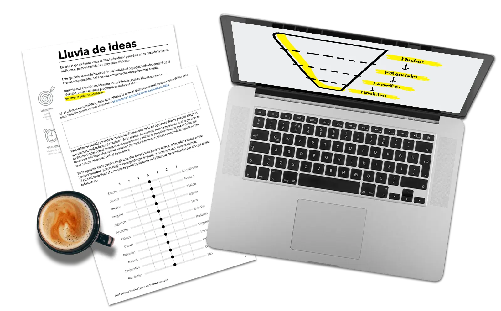 - Plantilla y ejemplo para realizar el brief con los criterios claves de la marca y el negocio.
